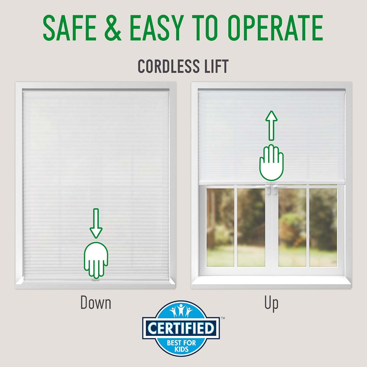 • La construcción única de panal ofrece aislamiento y absorción de sonido. Cuenta con un sistema de elevación inalámbrico que es seguro para niños y mascotas.