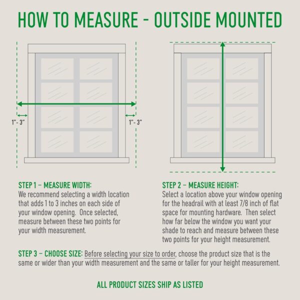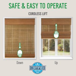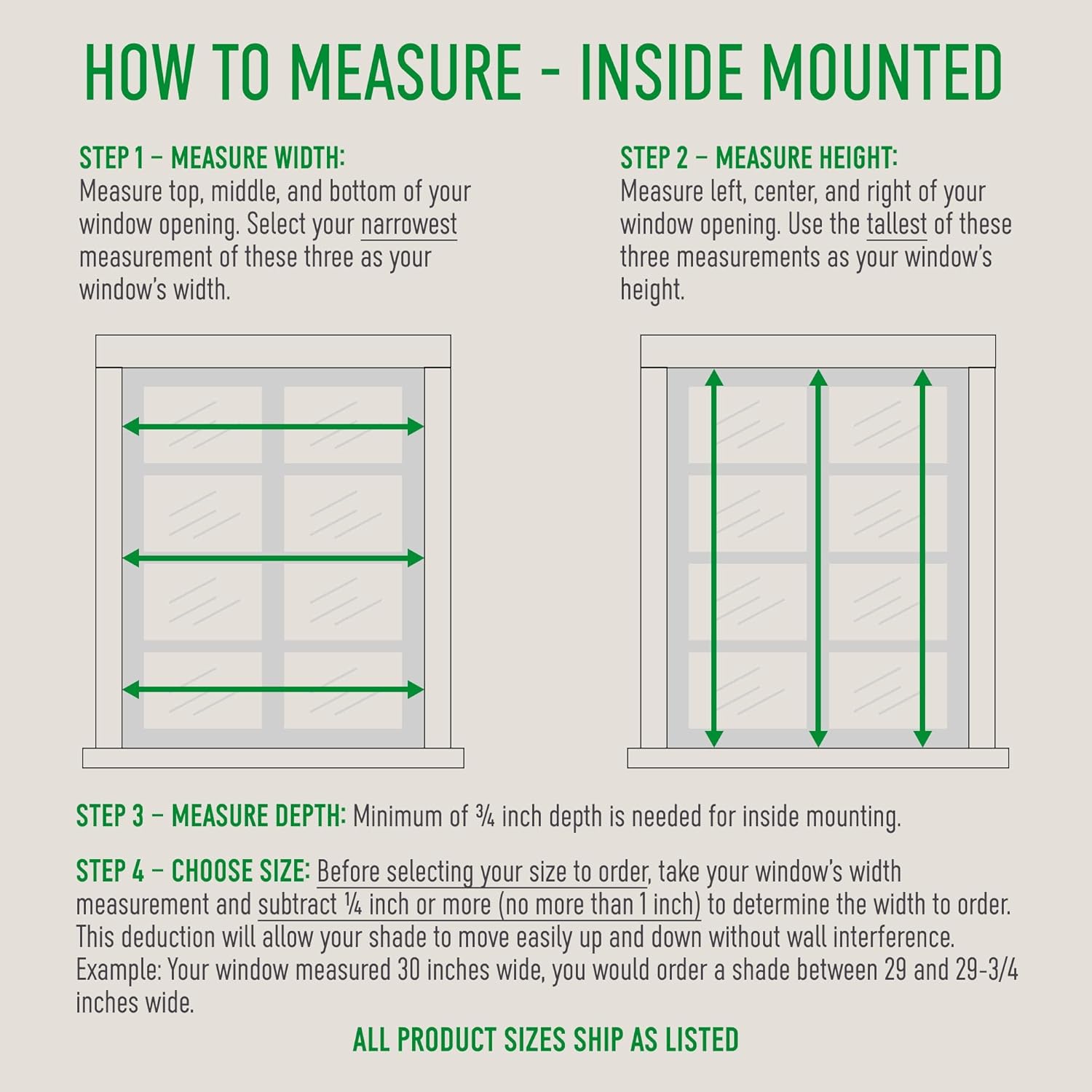 Calyx Interiors Se esfuerza por reimaginar los tratamientos de ventanas proporcionando persianas y persianas de calidad a precios asequibles. Nuestros tonos romanos de bambú naturales son el epítome de esta filosofía. Fabricado con bambú de alta calidad tejido juntos crea un tono filtrante de luz que aporta textura y estilo a cualquier habitación. La cenefa de 7 pulgadas no solo oculta todos los accesorios visibles, sino que también se combina maravillosamente con el riel inferior de madera a juego para crear un aspecto personalizado y saludable. Nuestro sistema de elevación inalámbrico evita la necesidad de cables antiestéticos para subir y bajar nuestra sombra, mientras que también es más seguro para mascotas y niños. Estas persianas son ideales para cualquier ventana o puerta de tu hogar u oficina. Cada persiana incluye todos los accesorios necesarios para montar dentro o fuera del marco de tu ventana, junto con instrucciones de montaje para permitir una experiencia de instalación fácil y sin estrés. Consulte nuestros diagramas publicados para saber cómo medir sus ventanas para seleccionar el tamaño perfecto para sus necesidades.