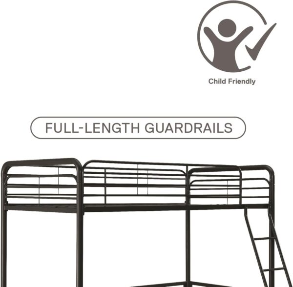• Incluye rieles de protección de 13 pulgadas en la litera superior