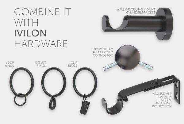 • Materiales de alta calidad: la barra de cortina ajustable Ivilon está hecha de acero duradero con remates de aluminio.