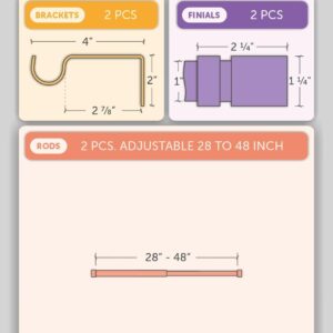 Ivilon Barras de cortina negras – Diseño de remates escalonados, 1 pulgada de diámetro, tratamiento de ventana moderno, 28 a 48 pulgadas.