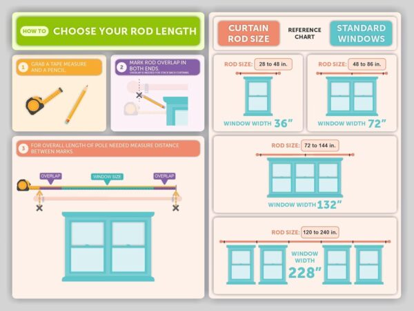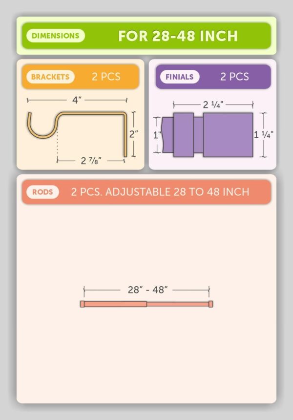 • Diseño versátil y ajustable: disponible en tamaños telescópicos de 28 pulgadas a 240 pulgadas, se adapta a cualquier ventana, puerta de patio, puerta corredera y más.