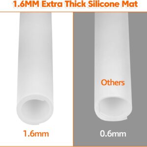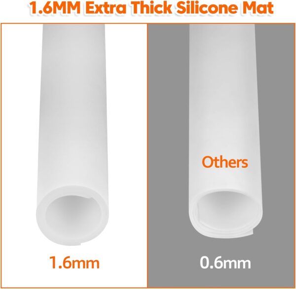 • Alfombrilla de silicona extra gruesa: el diseño de 0.063 in de grosor hace que tenga una mejor protección y no sea fácil de romper. Enrollamos las alfombrillas para empacar para evitar arrugas permanentes cuando se empaquetan y se envían, y ya no sufrirás arrugas en el tapete.