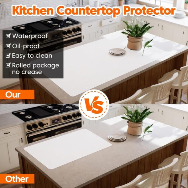 • Alfombrilla protectora útil: la alfombrilla protectora de encimera es superficie antiadherente, son perfectas para hornear u otros alimentos preparados, mientras que la parte inferior se adhiere fuertemente, adoptando un tratamiento de superficie impermeable y antideslizante, hace que no sea fácil de deslizar, manteniéndose estable en la encimera y protege los mostradores de derrames, arañazos, grasa o manchas.