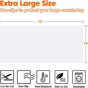Tapete de silicona grande, resistente al calor, de 72 x 16 pulgadas, para encimera, impermeable, cortable, protector de encimera, multiusos, tapete de silicona para encimera de cocina (translúcido)